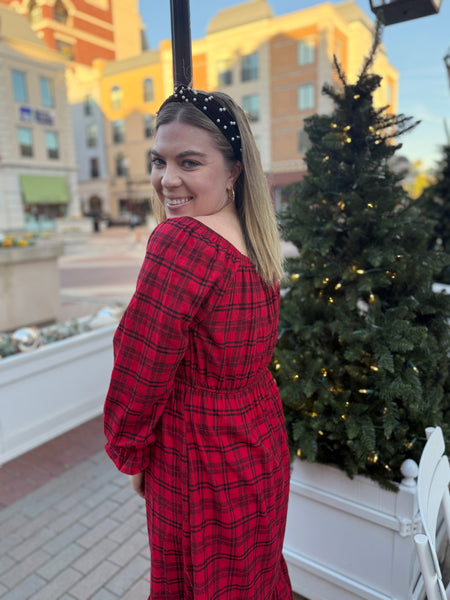 Get into the festive spirit with this Holiday Cheer Dress! Its comfortable design and elastic waistband make it perfect for all-day wear, while the square neckline adds a touch of elegance. Plus, it's picture worthy, so you can capture all your holiday memories in style!